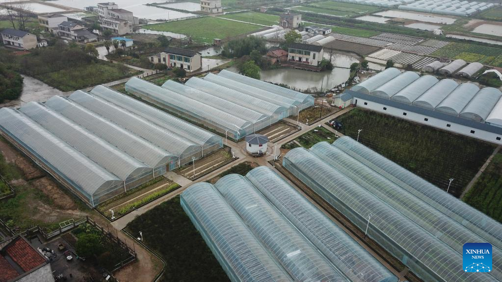 This aerial photo taken on March 23, 2023 shows a multi-functional greenhouse in Yuhu District of Xiangtan City, central China's Hunan Province. (Xinhua/Chen Zeguo)