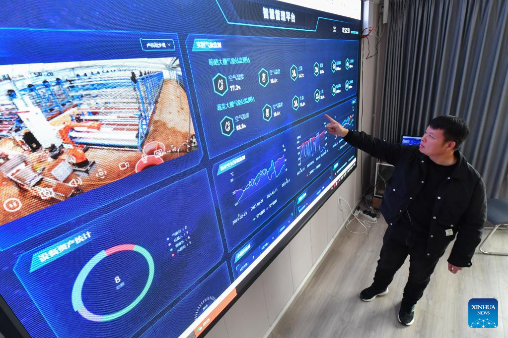 A farmer introduces 5G intelligent agricultural system in Yuhu District of Xiangtan City, central China's Hunan Province, March 23, 2023. (Xinhua/Chen Zeguo)