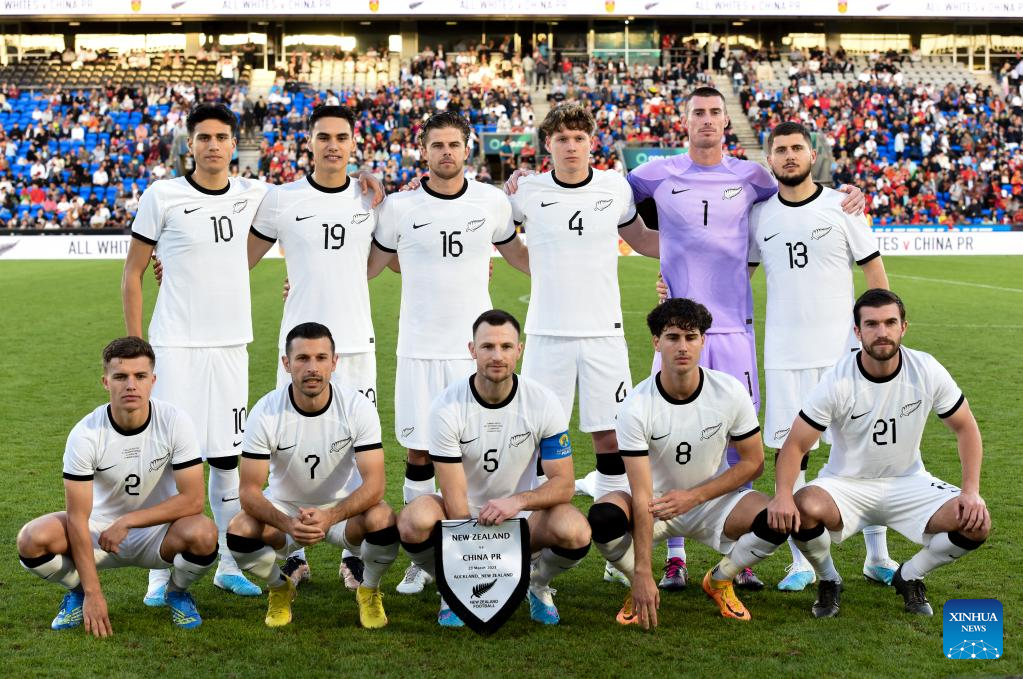 Players of New Zealand line up before an international freindly match between New Zealand and China in Auckland, New Zealand, March 23, 2023. (Xinhua/Guo Lei)