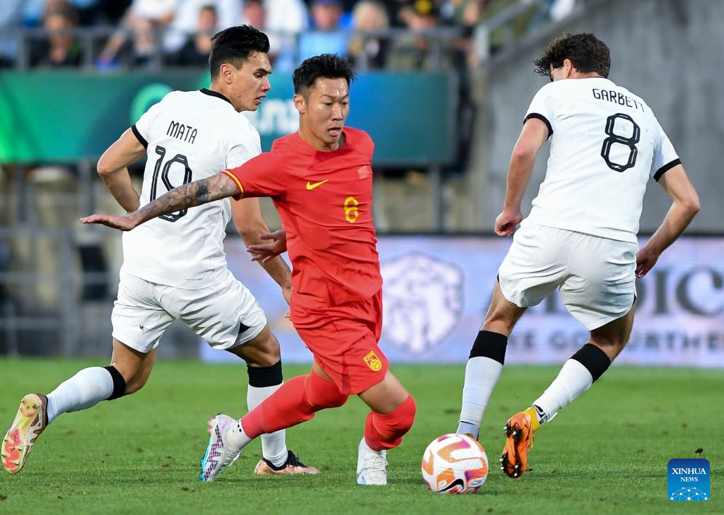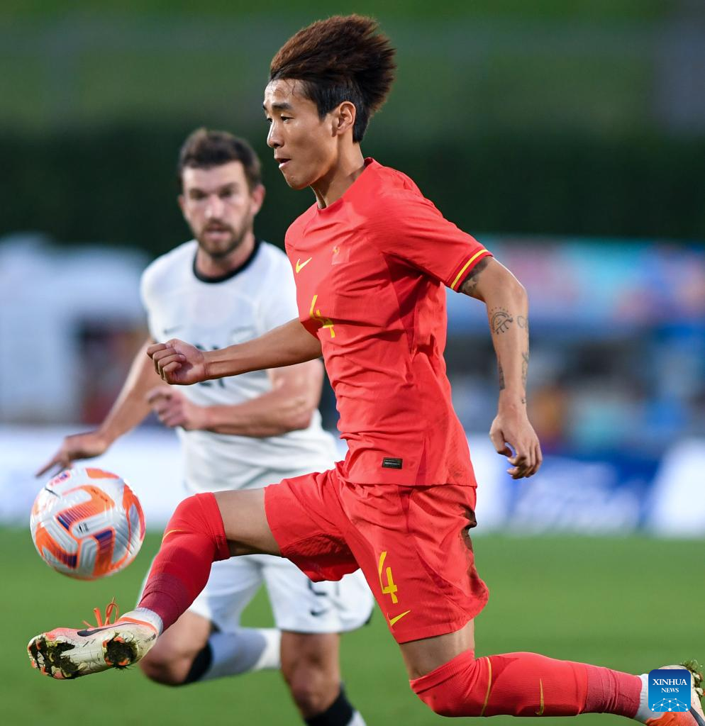 Wei Shihao of China controls the ball during an international freindly match between New Zealand and China in Auckland, New Zealand, March 23, 2023. (Xinhua/Guo Lei)