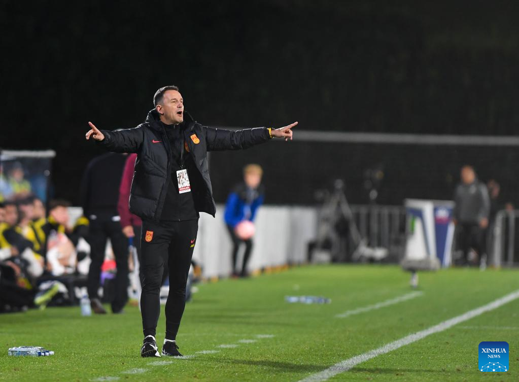 Aleksandar Jankovic, head coach of China, reacts during an international freindly match between New Zealand and China in Auckland, New Zealand, March 23, 2023. (Xinhua/Guo Lei)