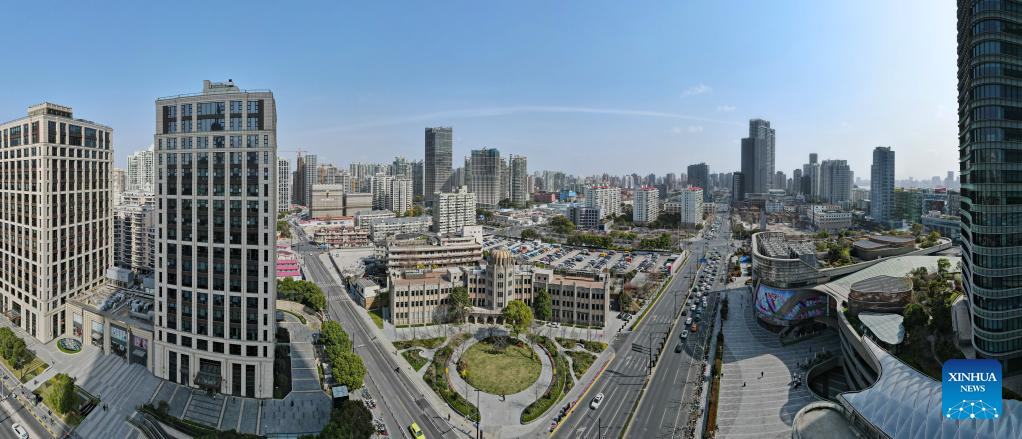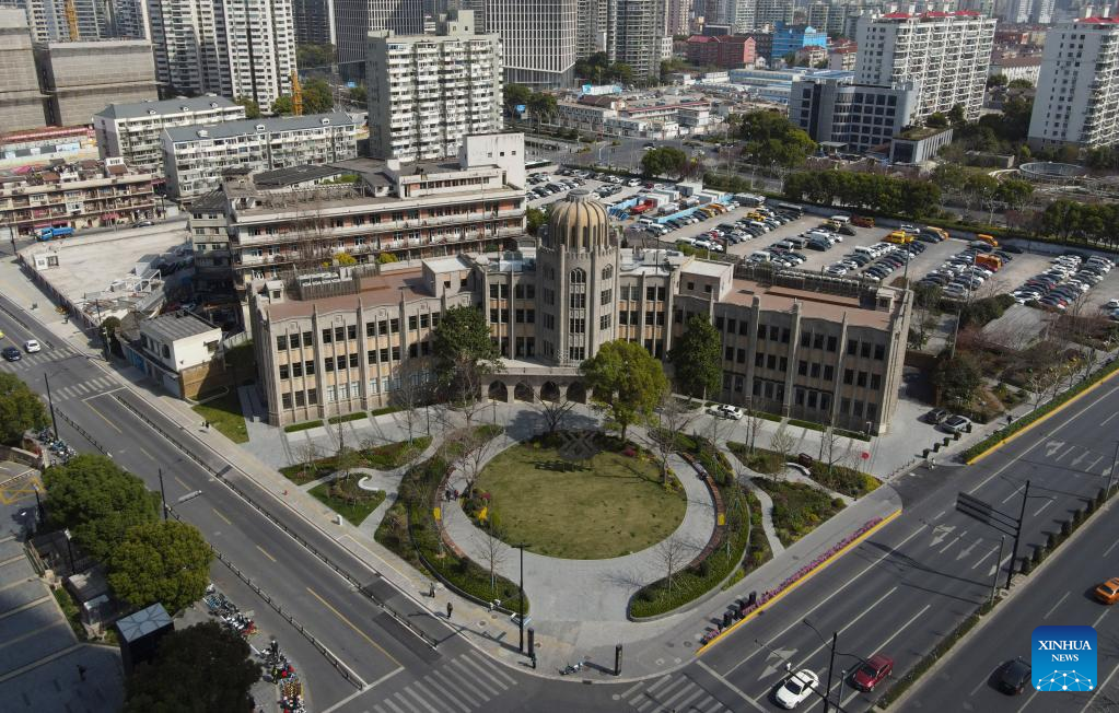 This aerial photo taken on March 16, 2023 shows a view of the site of Henry Lester Institute of Technical Education, a heritage building which is now home to the Design Innovation Institute Shanghai, in east China's Shanghai. (Xinhua/Fang Zhe)