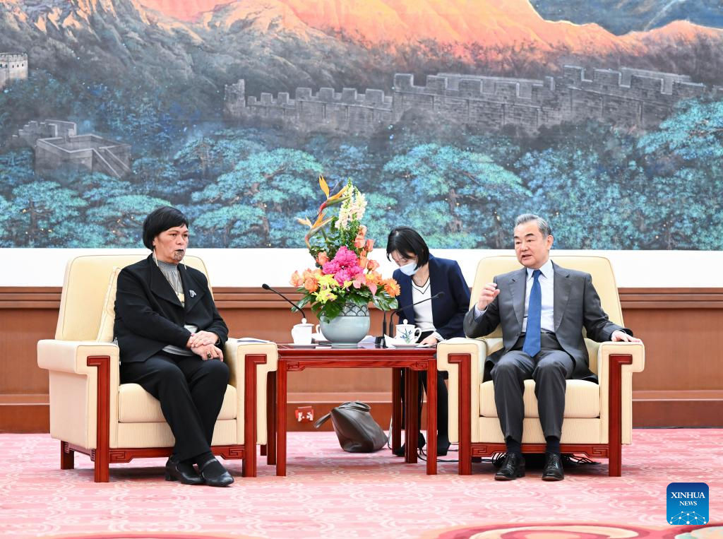 Wang Yi, a member of the Political Bureau of the Communist Party of China (CPC) Central Committee and director of the Office of the Foreign Affairs Commission of the CPC Central Committee, meets with visiting New Zealand Foreign Minister Nanaia Mahuta in Beijing, capital of China, March 24, 2023. (Xinhua/Yan Yan)