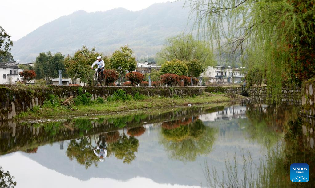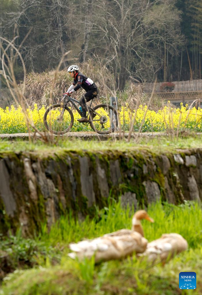 A cyclist competes during the men's MTB Race of the 18th China Huangshan (Yixian) International Cycling Open in Yixian, east China's Anhui Province. The cycling event kicked off here on Saturday. (Xinhua/Zhang Chen)