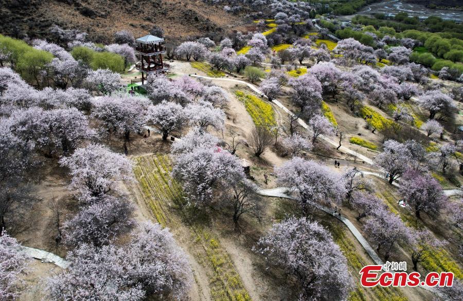 Picturesque scenery of peach blossoms at Gala village, renowned as "1st village of peach blossoms", Nyingchi, southwest China's Tibet Autonomous Region, March 26, 2023. (Photo: China News Service/Li Lin)