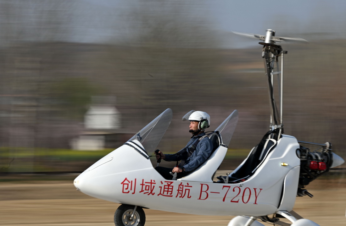Yang Shiyi takes off in his rotorcraft in Luoyang city, central China’s Henan Province, on March 14, 2023. (Photo/Xinhua)