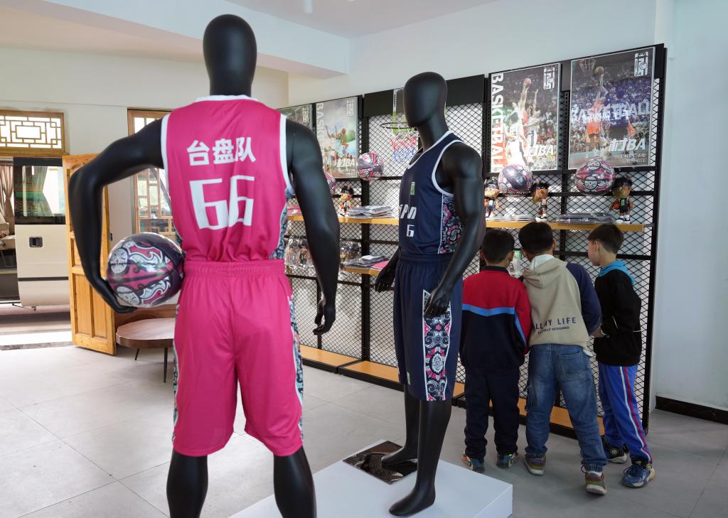 Children visit a village basketball official offline experience store in Taipan Village, Taijiang County, southwest China's Guizhou Province on March 25, 2023. (Xinhua/Li Ga)