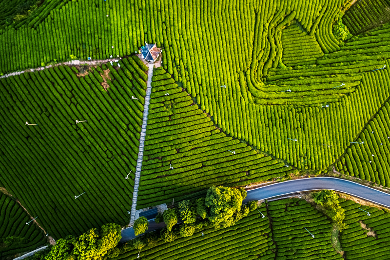 The carbon sinks from tea gardens are generated mainly in two ways: the tea trees absorb carbon dioxide and release oxygen while growing; and low-carbon activities in production, such as the use of organic and green fertilizers, help improve the quality of the soil and increase the content of organic matter in the soil, thus increasing the level of carbon sinks.