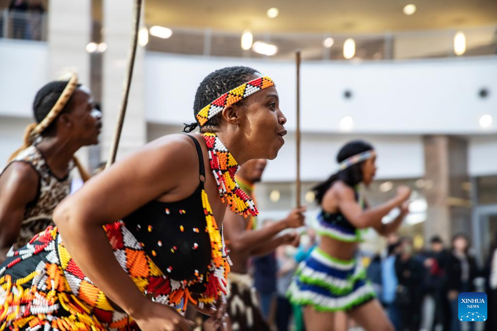 Dancers perform during a welcoming ceremony for tourists from China at the OR Tambo International Airport in Johannesburg, South Africa, on March 29, 2023. South Africa's tourism authority on Wednesday welcomed the first group of tourists from China since the outbreak of COVID-19. (Xinhua/Zhang Yudong)