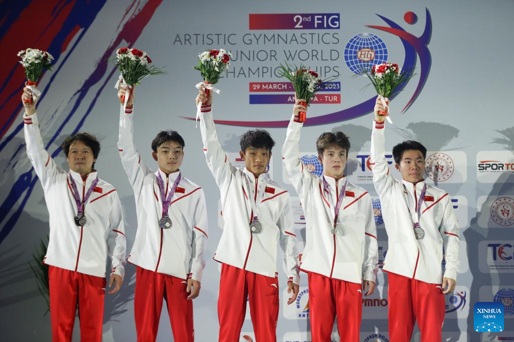 ANTALYA, Trkiye, March 29 (Xinhua) -- China settled for silver in the men's team finals on the opening day of the 2nd Artistic Gymnastics Junior World Championships on Wednesday, as a trio of Japanese gymnasts won the title.
