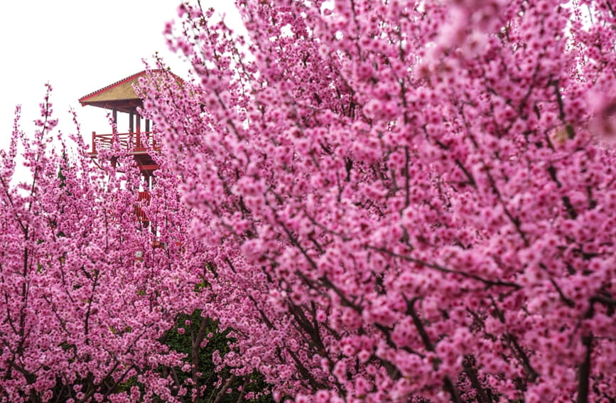 Photo shows blooming flowers in Yinxu National Archaeological Site Park in Anyang city, central China’s Henan Province. (Photo/Peng Jie)