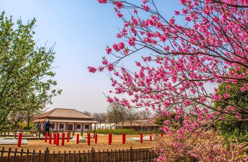 Photo shows blooming flowers in Yinxu National Archaeological Site Park in Anyang city, central China’s Henan Province. (Photo/Peng Jie)