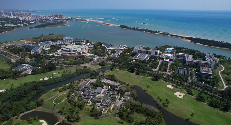 This aerial photo taken on Feb. 24, 2023 shows a view of the zero-carbon demonstration zone in Boao, south China's Hainan Province. (Xinhua/Yang Guanyu)