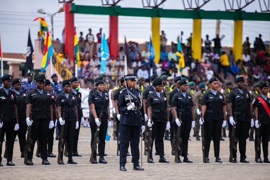 Security personnel of the Ghana Police Service take part in a parade during the Independence Day celebrations in Kumasi, Ghana, on March 6, 2023. (Photo by Yaw Afrim Gyebi/Xinhua)
