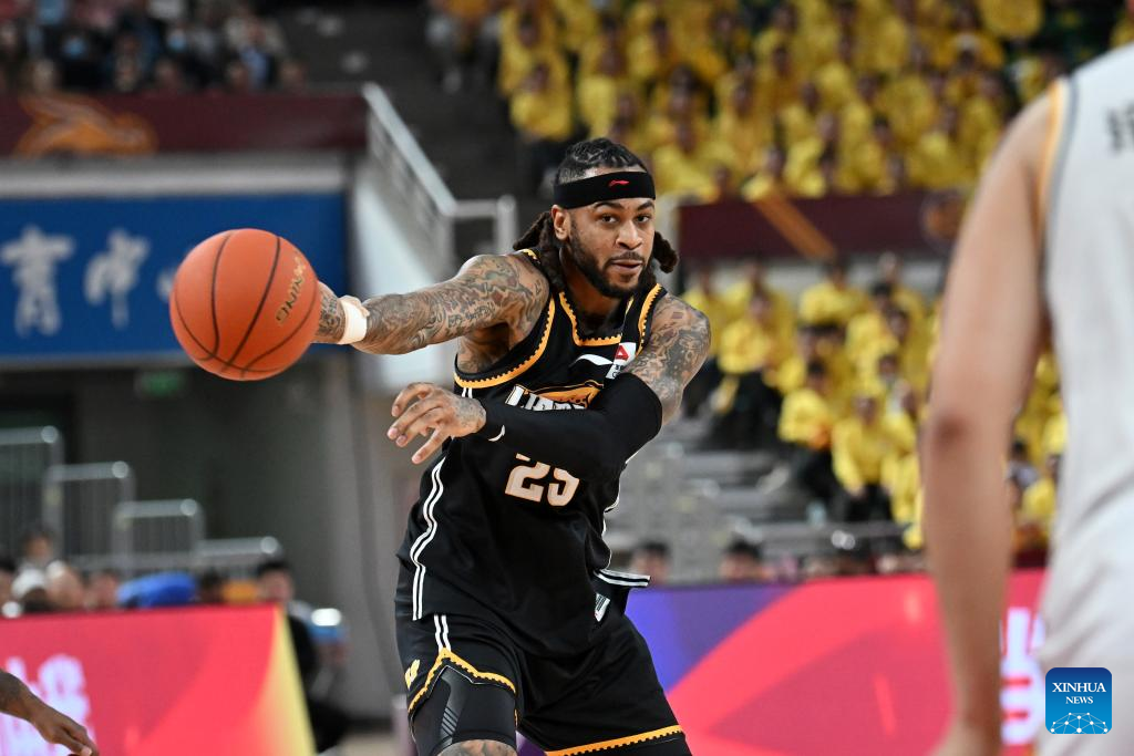 Eric Moreland of Liaoning Flying Leopards passes the ball during the 40th round match between Shanxi Loongs and Liaoning Flying Leopards at 2022-2023 season of the Chinese Basketball Association (CBA) league in Taiyuan, capital of north China's Shanxi Province, March 30, 2023. (Xinhua/Zhan Yan)