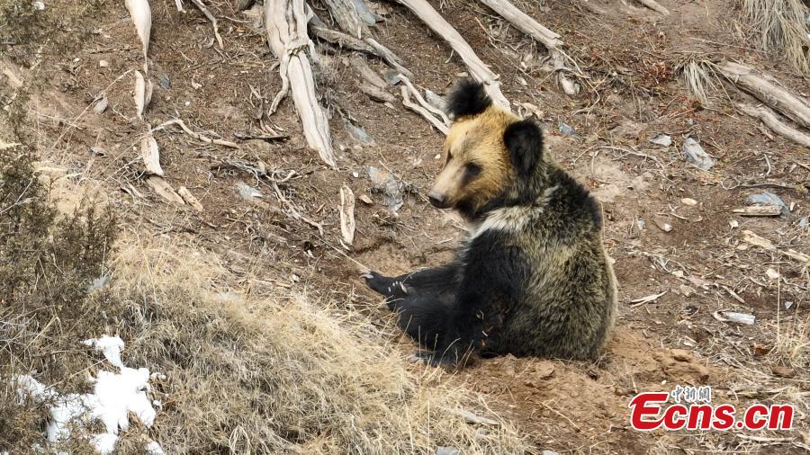 A brown bear is captured on camera emerging after months of hibernation at the Sanjiangyuan National Park, northwest China's Qinghai Province. (Photo/China News Service)