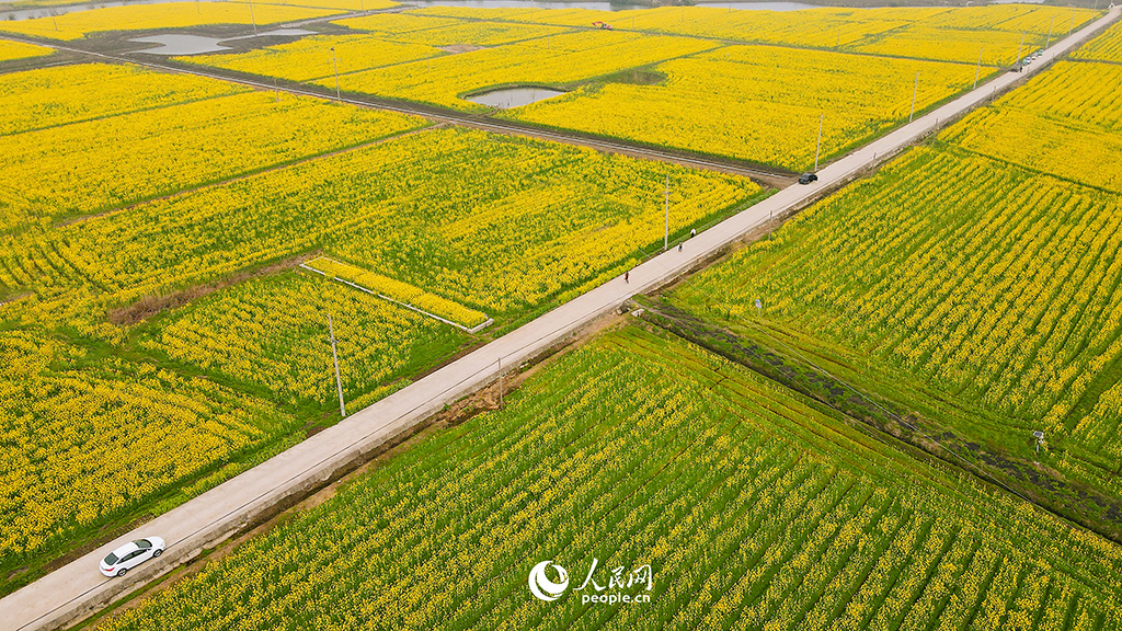 Photo taken on March 19, 2023 shows rapeseed flower fields in Xiangshuijian village, Wuhu city, east China's Anhui Province. (People's Daily Online/Wang Xiaofei)