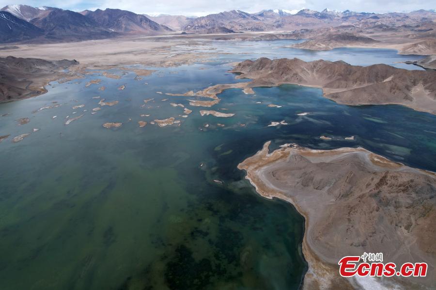 Aerial view shows the stunning scenery of Pangong Tso Lake at an average altitude of 4,242 meters in southwest China's Tibet Autonomous Region. (Photo: China News Service/Li Lin)
