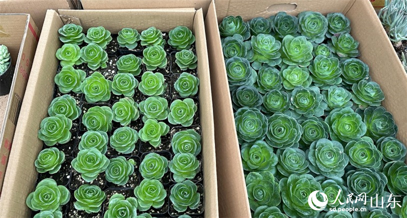 Photo shows?succulent?plants at the China Qingzhou flower and seedlings trading center in Qingzhou, east China’s Shandong Province. (People’s Daily Online/Qiao Shu)