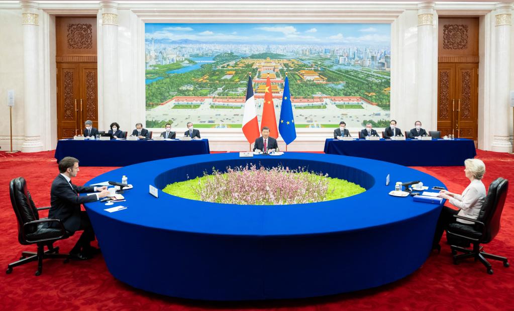 Macron said the EU and China should work with each other to stay away from the trap of economic decoupling and severing supply chains, carry out mutually-beneficial cooperation on an equal footing, tackle pressing global challenges such as climate change, and keep deepening the EU-China comprehensive strategic partnership.