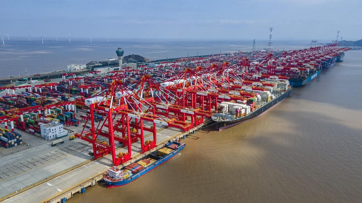 Photo shows an automated terminal of the Phase IV of Shanghai Yangshan Deep Water Port. (People's Daily Online/Wang Chu)