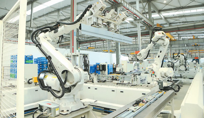 Intelligent mechanical arms work in a smart factory in the Linping Economic and Technological Development Zone, Linping district, Hangzhou city, east China’s Zhejiang Province. (Photo/Dou Hanyang, Wang Jue)