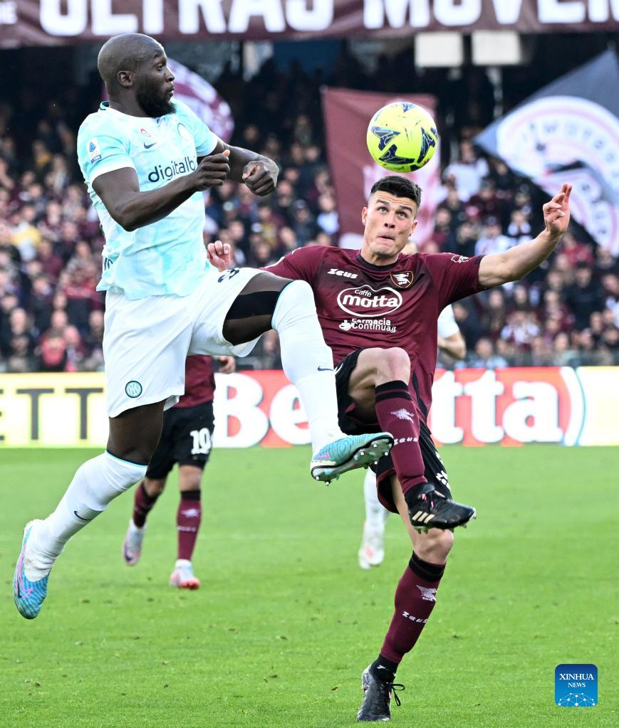 ROME, April 7 (Xinhua) -- Inter Milan's long-awaited victory was ruined by Antonio Candreva as the ex-Inter player's stunner in the dying minutes helped Salernitana draw the Nerazzurri 1-1 in Serie A on Friday.