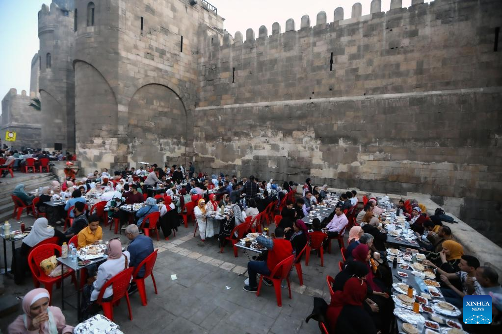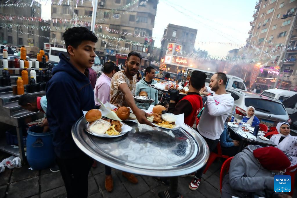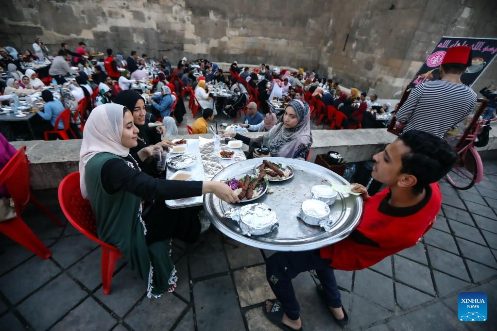 People have iftar meals during Ramadan in Cairo, Egypt, on April 7, 2023. (Xinhua/Ahmed Gomaa)