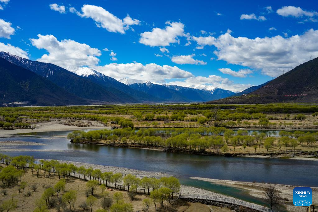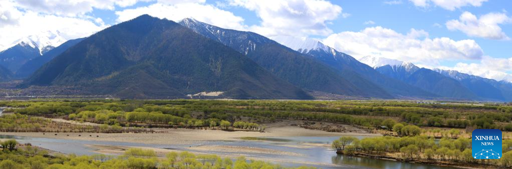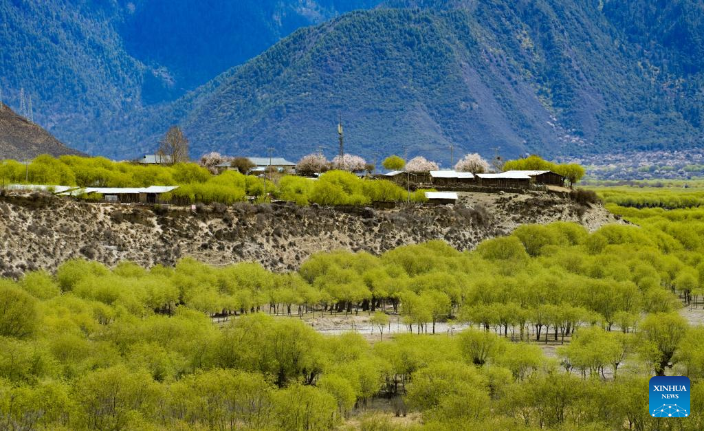 This photo taken on April 7, 2023 shows the spring scenery at Yani national wetland park in Nyingchi, southwest China's Tibet Autonomous Region. (Xinhua/Nie Yi)