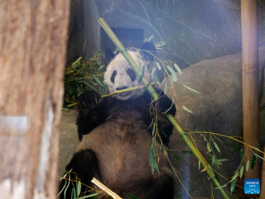 Female giant panda Ya Ya is pictured at the Memphis Zoo in Memphis, the United States, April 8, 2023. The Memphis Zoo held a farewell event for Ya Ya on Saturday. Hundreds of people reportedly attended the sendoff at the CHINA exhibit, where they said goodbye to Ya Ya, signed letters, and watched cultural performances. (Photo by Adam/Xinhua)