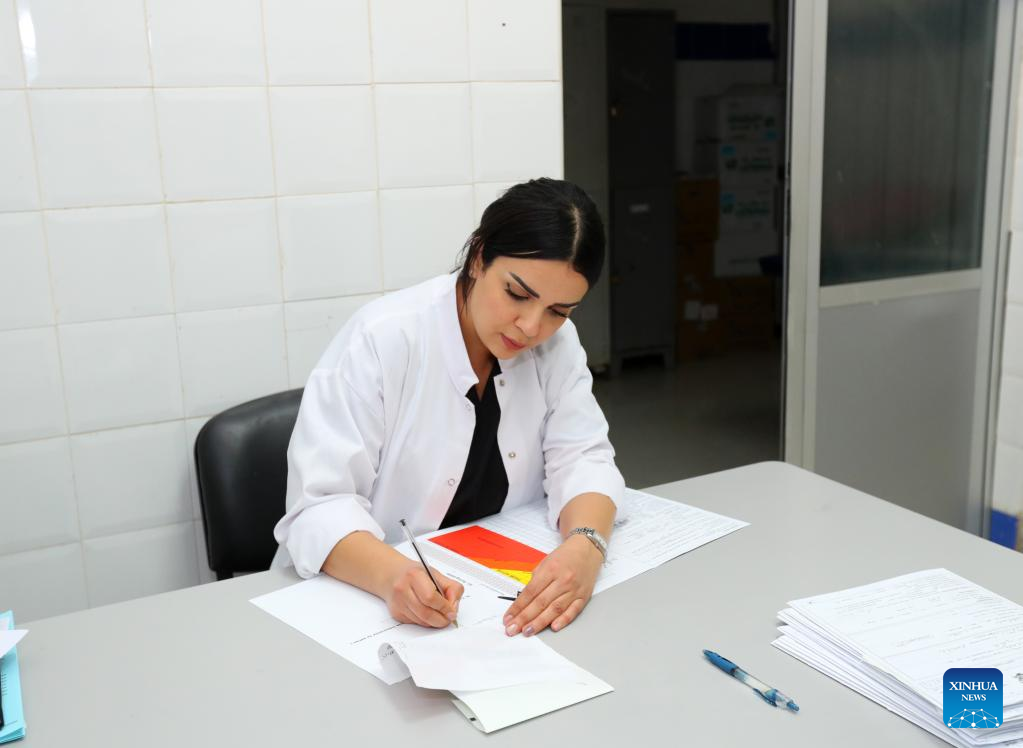 Moroccan doctor Rachidi Imane works at the Rhamna Provincial Central Hospital in Ben Guerir, Morocco, Feb. 26, 2023. "I'm a living example among the thousands of cases saved by Chinese doctors in Morocco," Rachidi Imane, a Moroccan doctor, recalled how she was saved upon birth by a Chinese doctor 42 years ago. (Xinhua/Sui Xiankai)