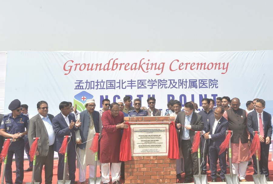This photo taken on April 8, 2023 shows a scene of the groundbreaking ceremony of North Point Medical College and Hospital (NPMCH) in Panchagarh, Bangladesh. (Xinhua)