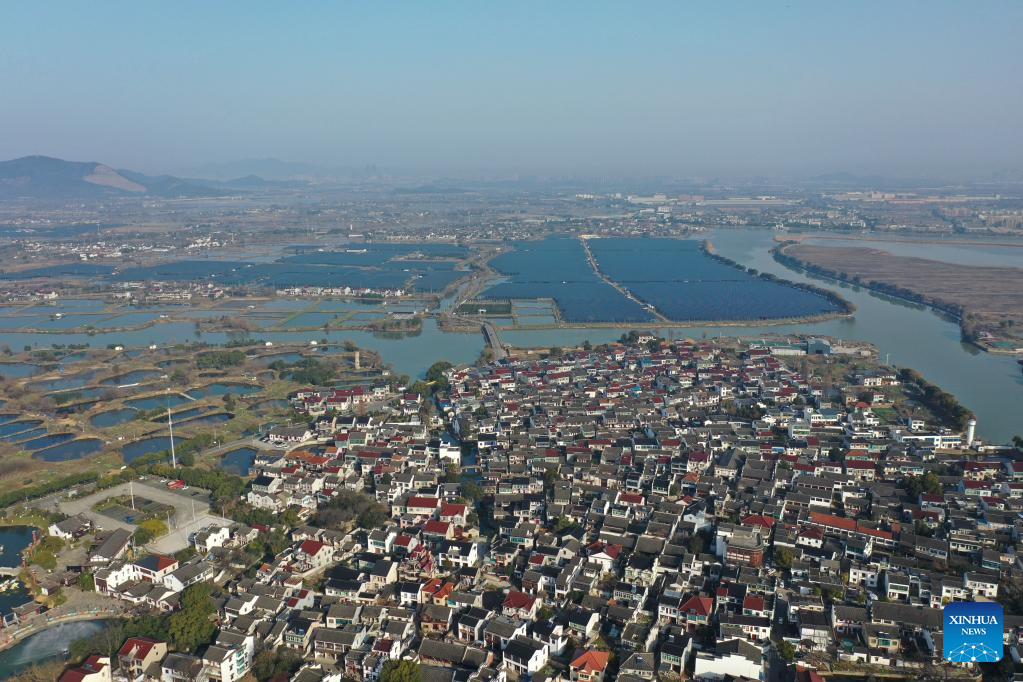 This aerial photo taken on Jan. 26, 2023 shows a view of Digang Village of Huzhou City, east China's Zhejiang Province. In June 2003, Zhejiang Province launched the "Thousand Villages Demonstration and Ten Thousand Villages Renovation" project, with the aim of comprehensively renovating ten thousand administrative villages in the province and building a thousand key villages of them into all-round well-off model villages. For twenty years, the project has created thousands of beautiful villages, and fundamentally changed the face of the province's countryside. (Xinhua/Huang Zongzhi)