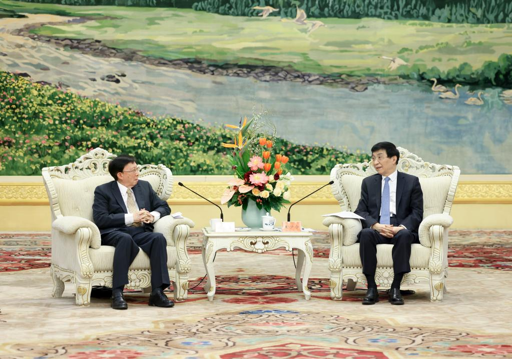 Wang, a member of the Standing Committee of the Political Bureau of the Communist Party of China (CPC) Central Committee and chairman of the National Committee of the Chinese People's Political Consultative Conference, met with the delegation led by Liu Chao-shiuan, co-president of the Cross-Strait CEO Summit, in Beijing.