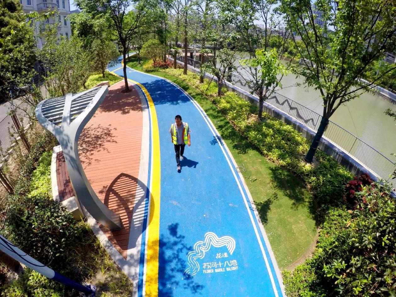 Photo shows a fitness trail along the Suzhou River in Putuo district, Shanghai. (People's Daily Online/Yang Jianzheng)