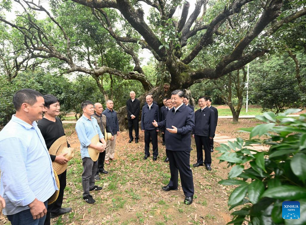 On Tuesday, Xi went to a village known for growing lychees, a subtropical fruit much loved by Chinese for generations, in the city of Maoming, where he visited a plantation, talked with agricultural technicians and learned about the operation of a cooperative and its function in promoting rural revitalization.