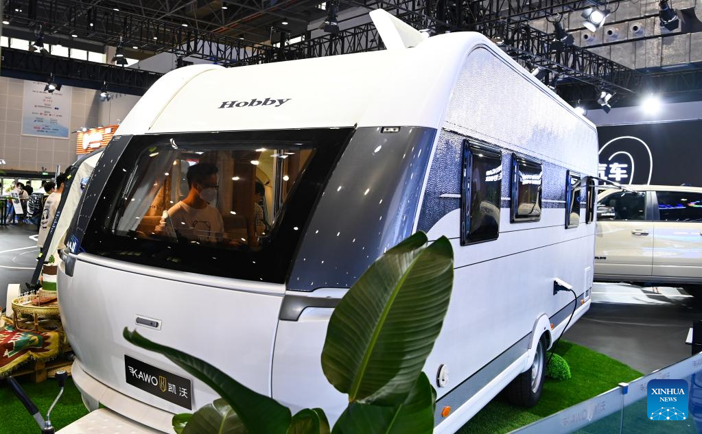 This photo taken on April 13, 2023 shows a German-made Hobby Recreational Vehicle (Hobby RV) at the third China International Consumer Products Expo (CICPE) in Haikou, south China's Hainan Province. The ongoing third CICPE held in China's southern province of Hainan has seen active participation from German enterprises with expertise in important consumer sectors including automobile, wristwatches, food and kitchenware. (Xinhua/Yang Guanyu)