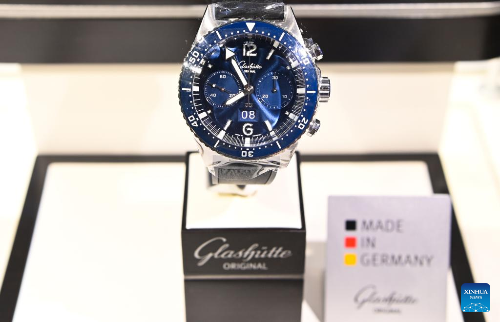 This photo taken on April 13, 2023 shows a wristwatch by German watchmaker Glashtte Original at the third China International Consumer Products Expo (CICPE) in Haikou, south China's Hainan Province. The ongoing third CICPE held in China's southern province of Hainan has seen active participation from German enterprises with expertise in important consumer sectors including automobile, wristwatches, food and kitchenware. (Xinhua/Yang Guanyu)