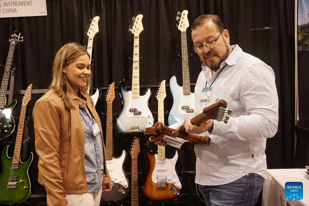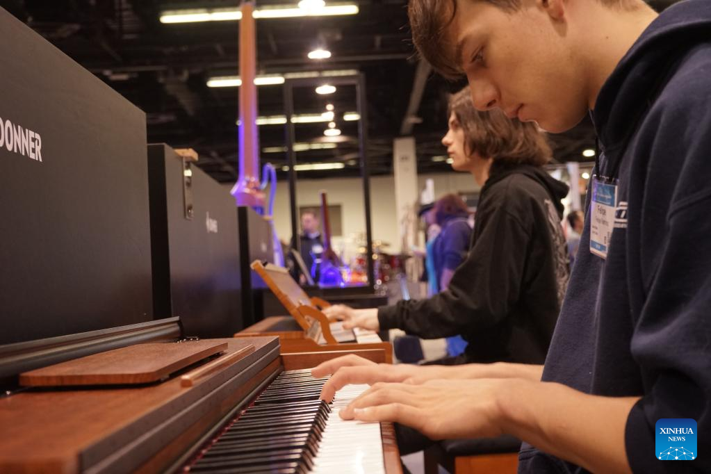 About 1,200 exhibitors in the music industry from across the globe participate in the 2023 National Association of Music Merchants (NAMM) Show, one of the world's largest music industry trade shows, held in Anaheim Convention Center, U.S. state of California, from Thursday to Saturday.