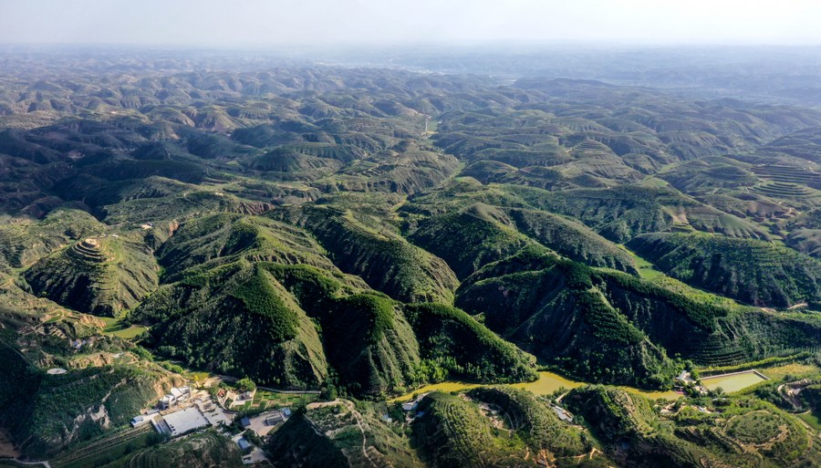 Aerial photo taken on Sept. 10, 2021 shows the scenery of Gaoxigou Village in Mizhi County, northwest China's Shaanxi Province. (Xinhua/Tao Ming)