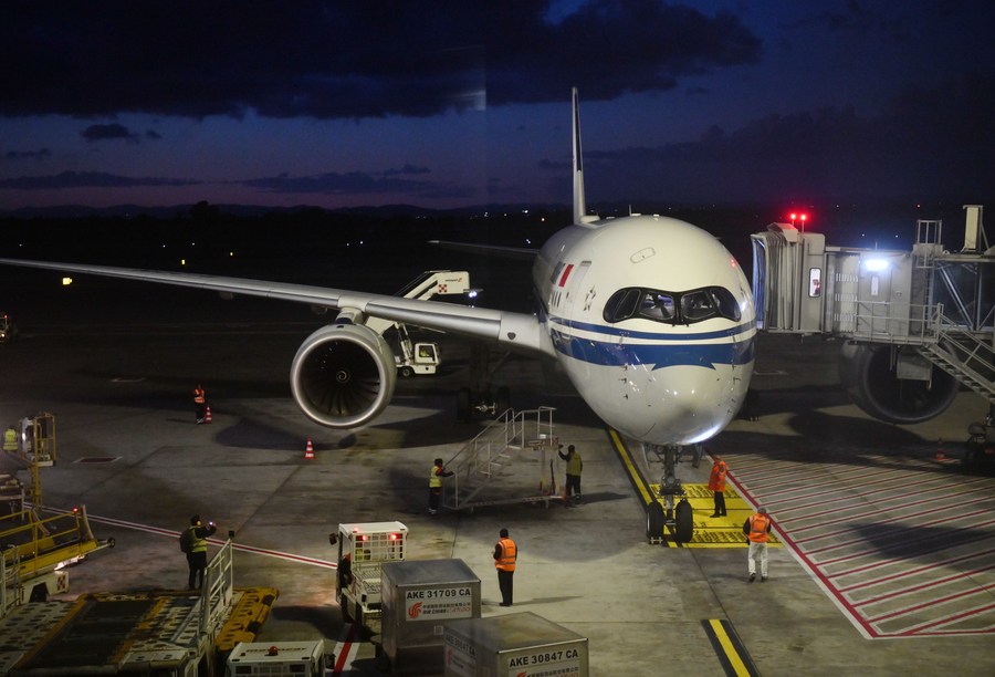 The first resumed direct flight from Beijing to Rome arrives at the Fiumicino airport in Rome, Italy, March 27, 2023. (Xinhua/Jin Mamengni)