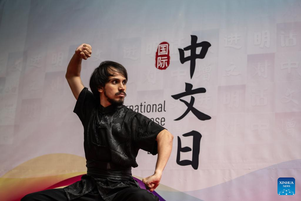 A man performs martial arts during an event celebrating the upcoming UN Chinese Language Day in Rio de Janeiro, Brazil, on April 19, 2023. The UN Chinese Language Day is observed every year on or around April 20, when the contribution of Chinese literature, poetry, and language to world culture is highlighted. (Xinhua/Wang Tiancong)