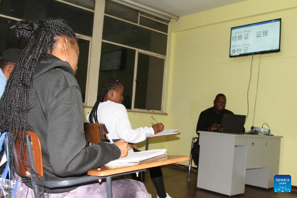 Students attend a Chinese language class at a school in Harare, Zimbabwe on April 19, 2023. China and Zimbabwe might be oceans and time zones apart, but through language, the distance is slowly being bridged. (Xinhua/Tafara Mugwara)