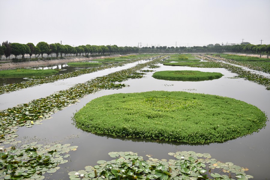 This photo taken on April 20, 2023 shows a view of Datong Lake aquatic plants industrial demonstration park in Yiyang, central China's Hunan Province. (Xinhua/Chen Zhenhai)