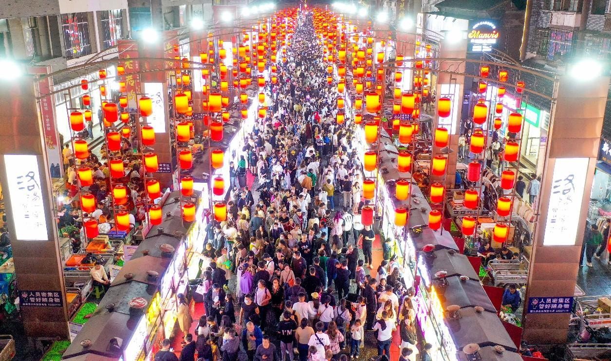 Tourists visit a night market in Luoyang, central China's Henan province, April 9. (People's Daily Online/Zhang Yixi)