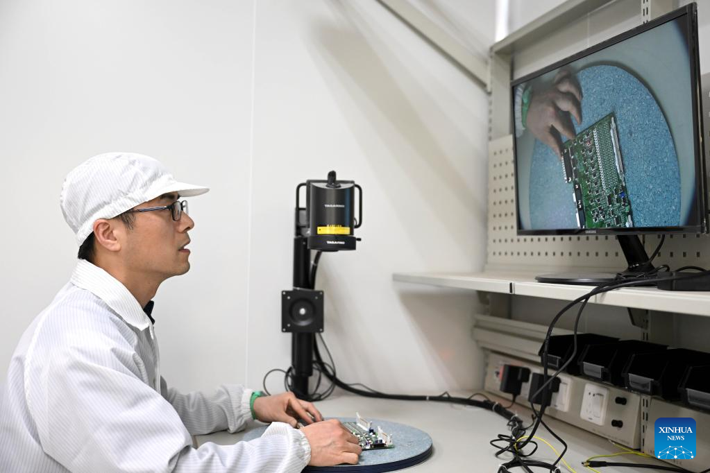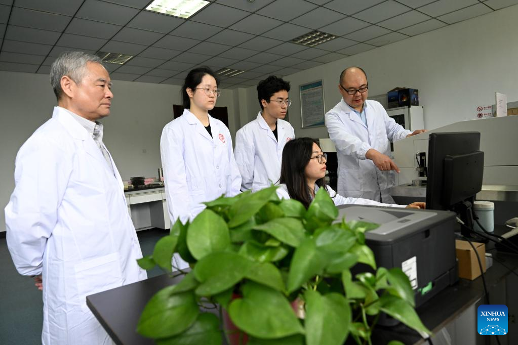 Liu Wangli, staff member of the Institute of Solid State Physics of Chinese Academy of Science (CAS), works at Hefei Institutes of Physical Science of CAS in Hefei, capital of east China's Anhui Province, on April 19, 2023. (Xinhua/Huang Bohan)