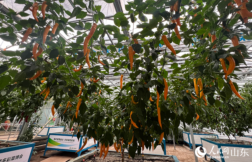 Photo shows peppers on display at the 24th China (Shouguang) International Vegetable Sci-Tech Fair in Shouguang city, east China's Shandong Province. (People's Daily Online/Liu Qi)