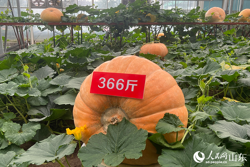 Photo shows a giant pumpkin on display at the 24th China (Shouguang) International Vegetable Sci-Tech Fair in Shouguang city, east China's Shandong Province. (People's Daily Online/Liu Qi)