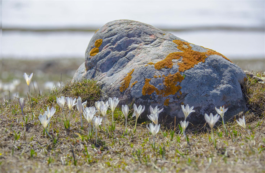 Crocus alatavicus, a species of wildflowers that begin to bloom relatively early in spring, starts to bloom in the Nalati grasslands in the Ili Kazak Autonomous Prefecture, northwest China's Xinjiang Uygur Autonomous Region. (Photo/Yang Xiaoqian)