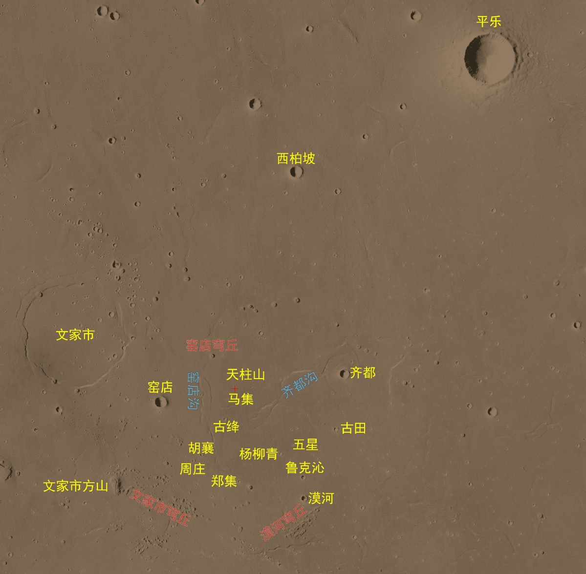 Through the study of images and data from Tianwen 1, Chinese scientists have spotted and identified many geological bodies surrounding the landing site of the Tianwen 1 and have named 22 of them after Chinese villages with renowned historical and cultural heritages.